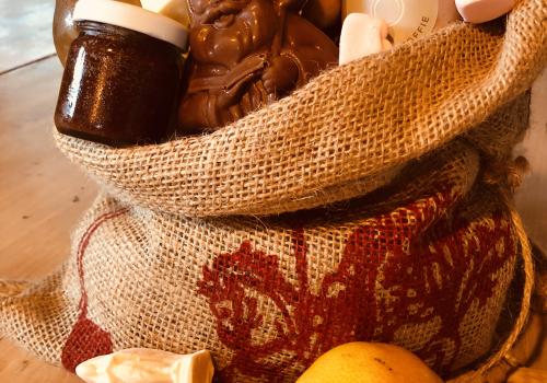 Sintontbijtzak kinderen (enkel op 06 en 07 december) 1 vanaf € 13 Op 06 en 07 december kun je genieten van een lekker Sint-ontbijtje. Alles is lokaal of vers gemaakt. In de box vind je het volgende terug: 1 klaaskoek, 1 pistolet, chocostick, appelsap van de boer huisgemaakte choco, Sintchocolade, Sintsnoep. bestel en selecteer opties